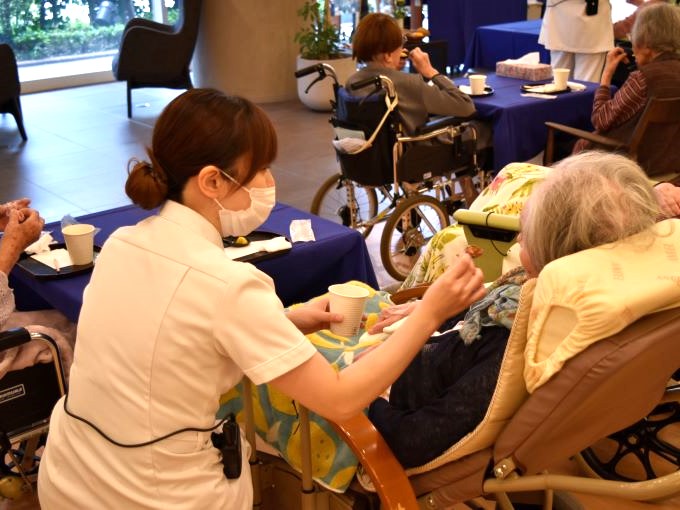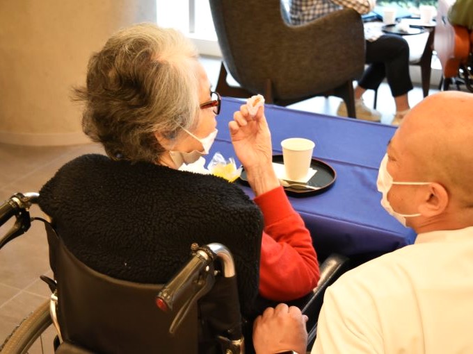 10月6日は空は厚い雲に覆われて時折雨もぱらつき、中秋の名月を愛でることはできませんでした。1階の壁画前ラウンジでは〝芋名月〟にちなみ、サツマイモプリンと芋餡入りマシュマロをご用意し秋の味覚をお楽しみいただきました。