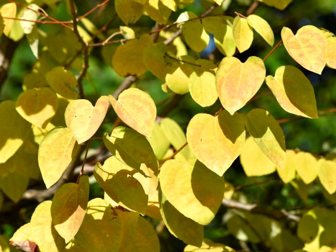 色付いたカツラの葉はカラメルのような甘い香りがします