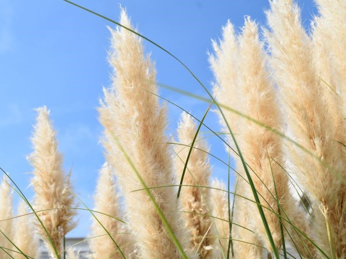 6階喫茶室横の<風の庭>のパンパスグラス(西洋ススキ)