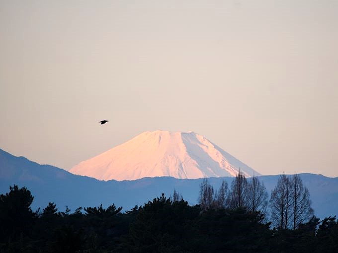 初日の出に照らされる富士山