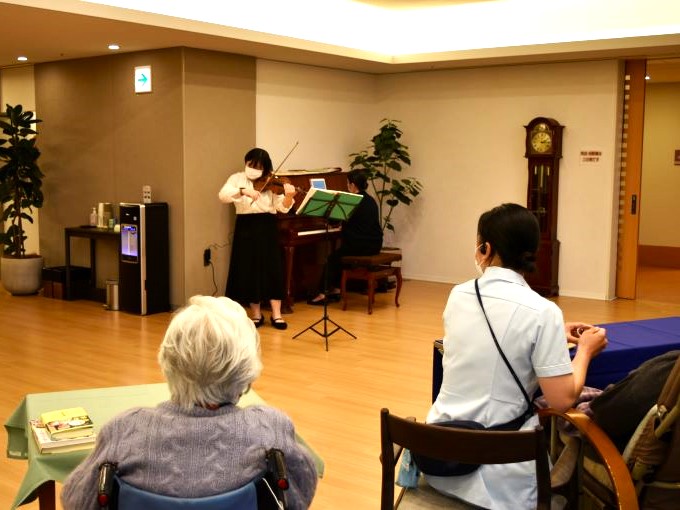今回はヴァイオリンとピアノの生演奏を聴きながらスウィーツを楽しんでいただきました。