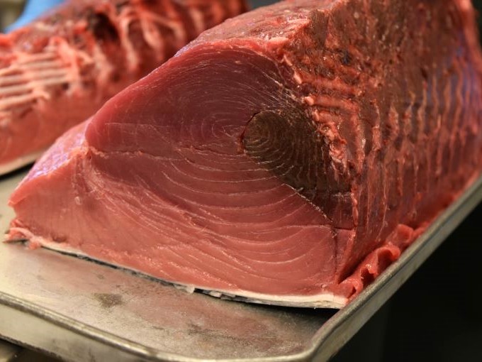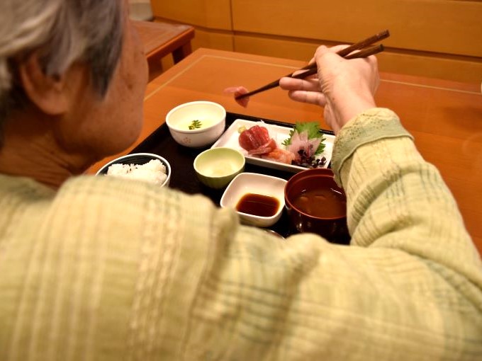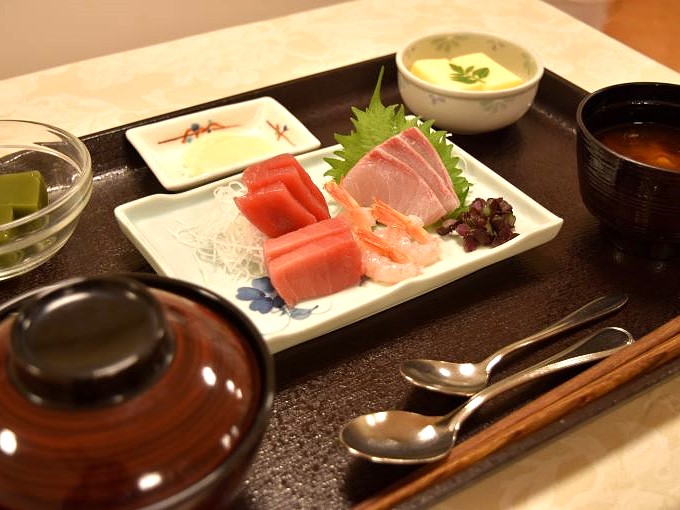 高知県のマグロを厨房でさばき、お刺身に仕上げました。本日のお夕食でお楽しみいただきました。